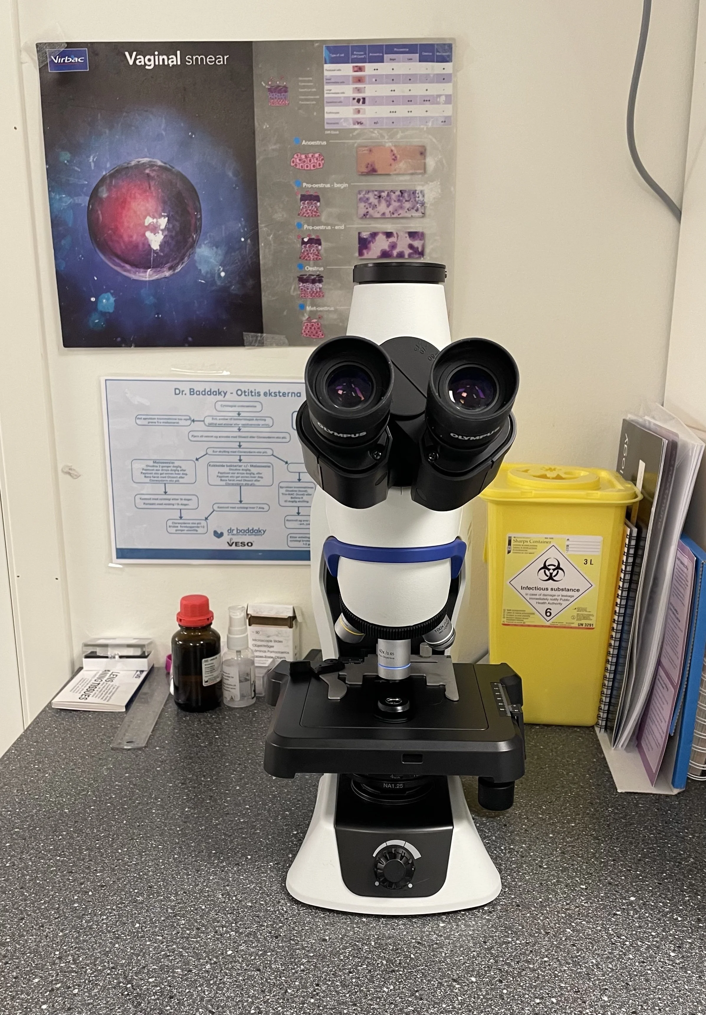 Mikroskopi er et nyttig vertøy som brukes ved en rekke sykdomstilstander fra hud, ører, mage og tarmsystemet og urinveier. I tillegg har vi egne apparat for urinanalyse.